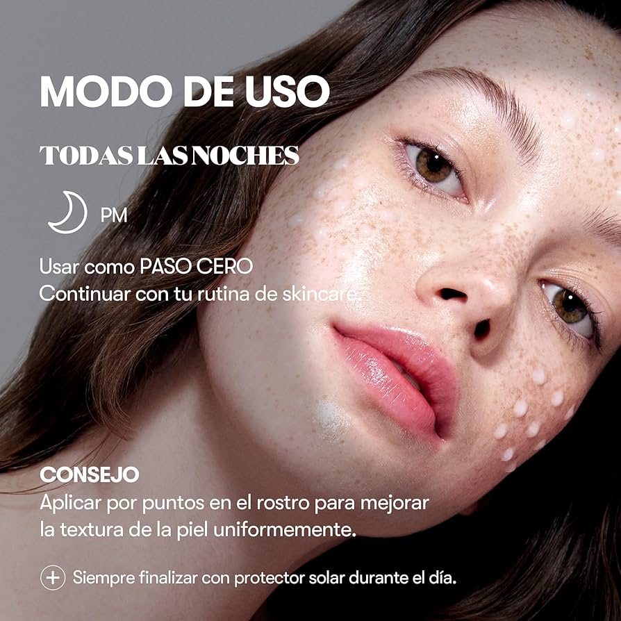 Modo de uso / How to use: Aplicar según la etapa de la rutina facial. Apply according to your skincare routine step.